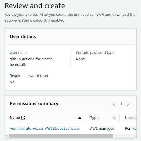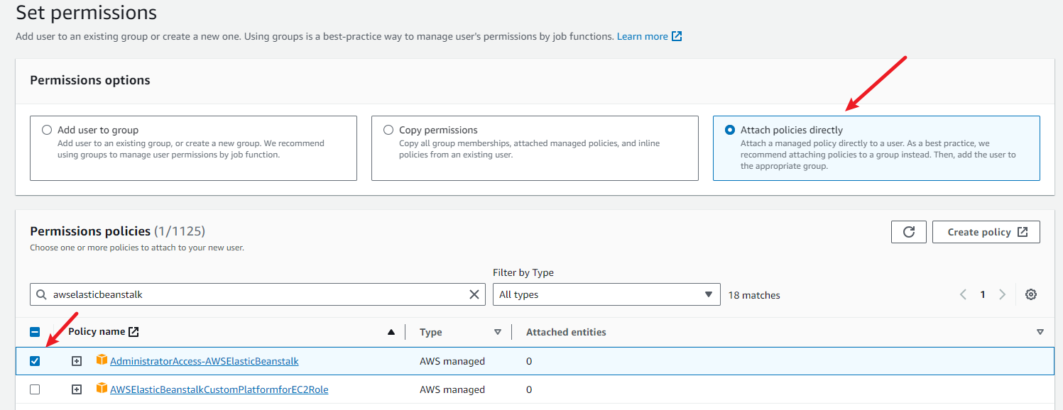 ElasitcBeanstalk의 사용자의 권한을 얻기 위해 AdministratorAccess-AWSElasticBeanstalk을 선택하자.