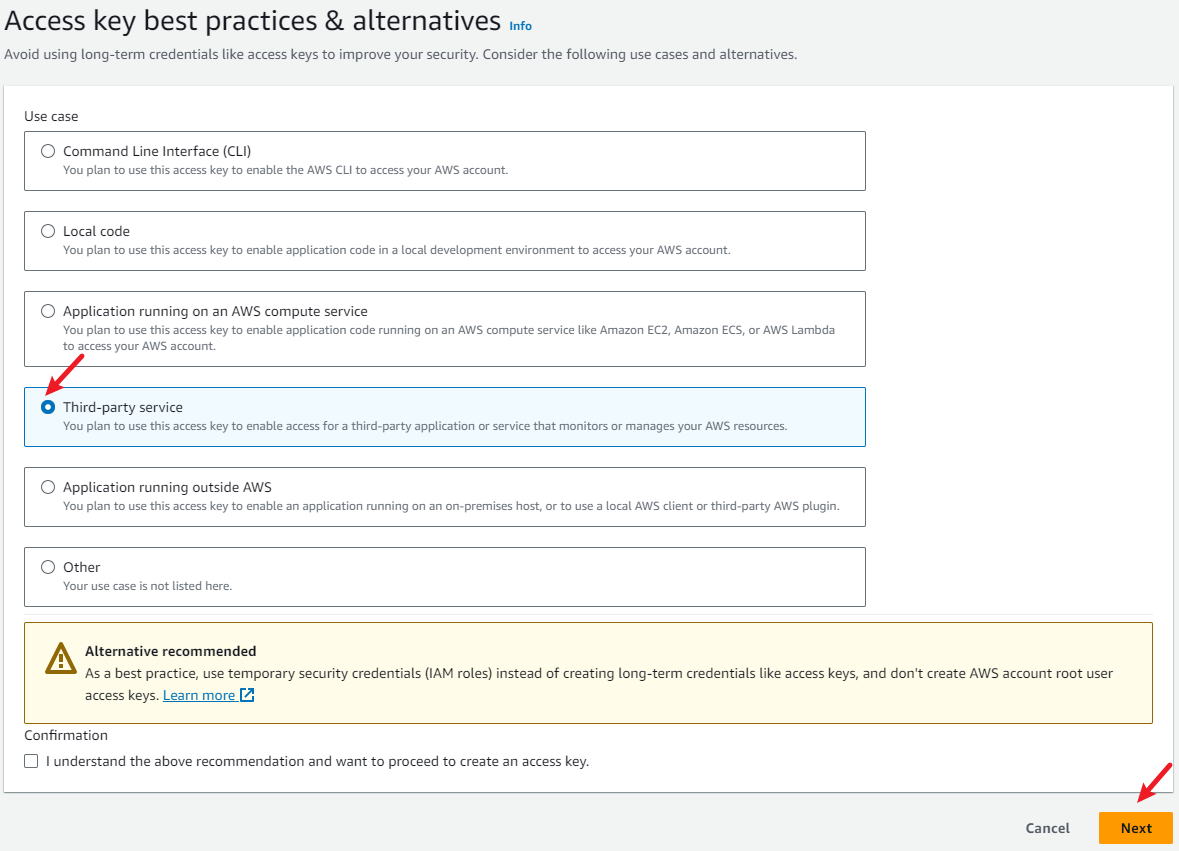 github actions가 이용하기 때문에 Third-party service를 클릭 후 Next를 누르자.