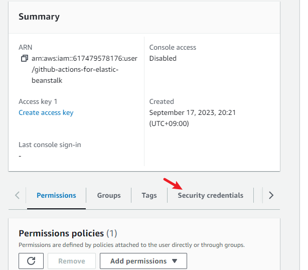 액세스 키와 비밀 키를 만들기 전에 해당 github actions용 유저를 만들어야 한다.